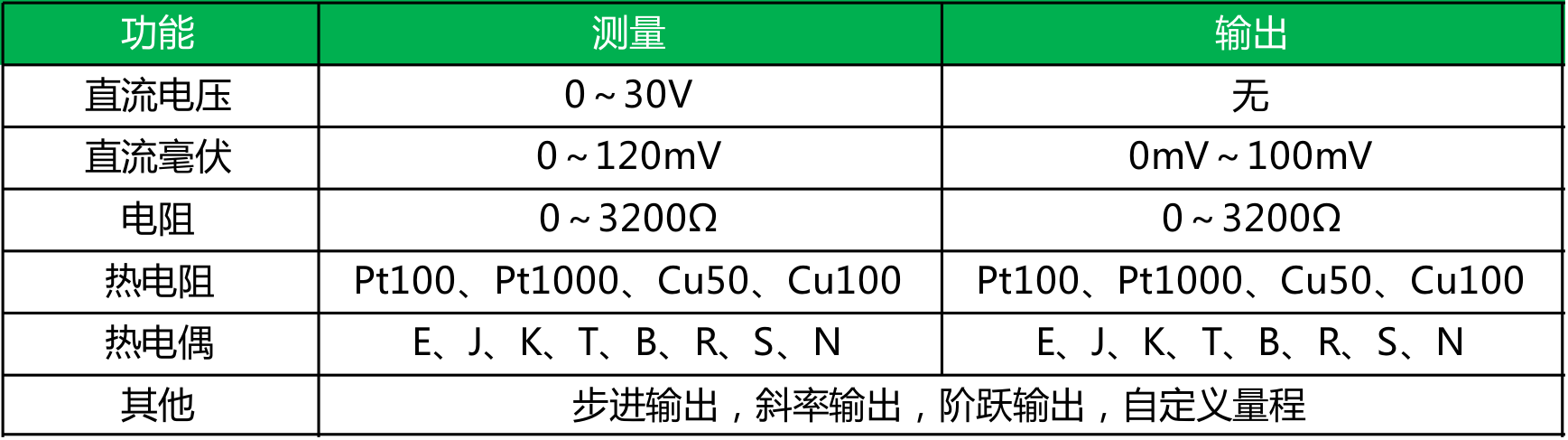 输出与测量功能一览表