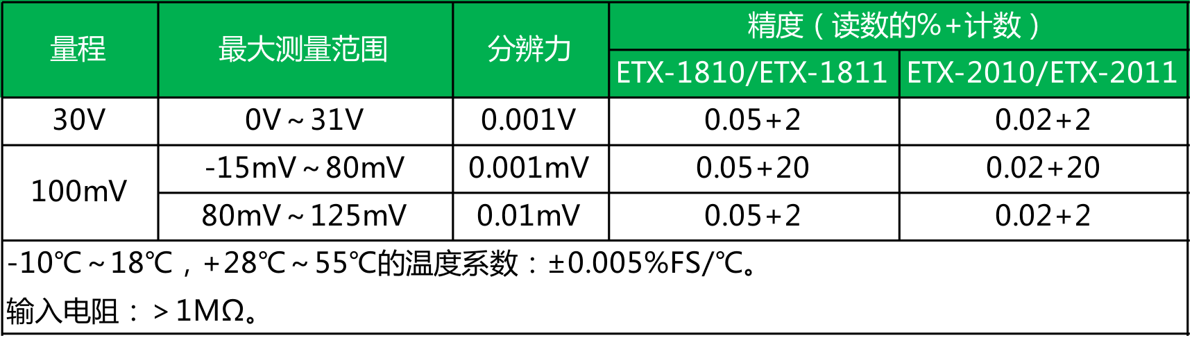 l 独有的自动识别三线、四线接线方式;精度为0.02%(ETX-2010或2011),0.05%(ETX-1810或1811);