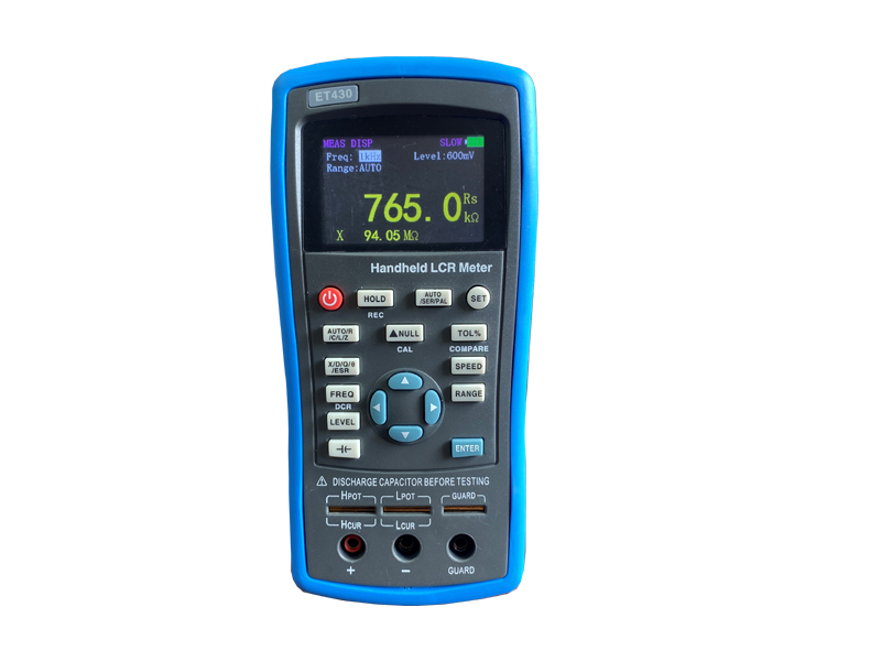 ET43系列手持电桥集2.8寸TFT显示、灵活方便的按键操作与USB全速通讯于一身;大容量锂电池可以保证长时间的工作。功能上不仅拥有全面的测量参数,还可以进行偏差测量和筛选,输出频率连续可调;在性能上,基本精度达到0.2%。
